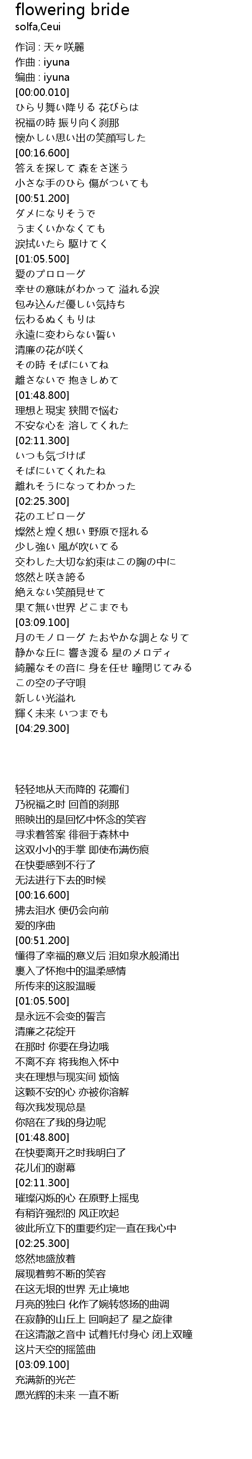 | [00:00.005] | 编曲 : iyuna |