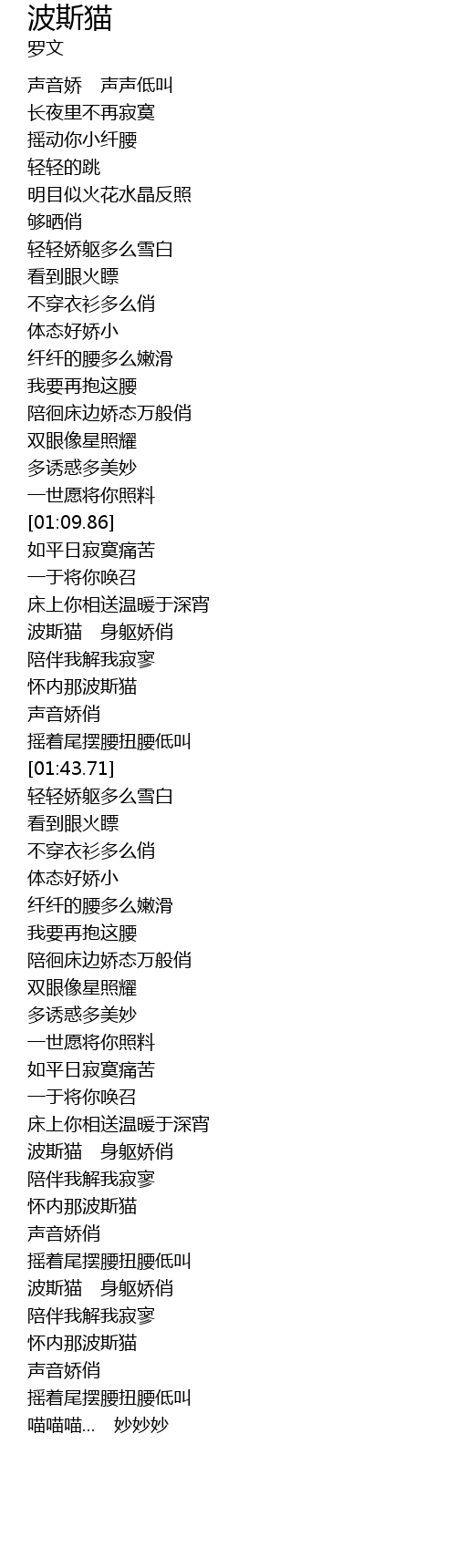 | [01:20.98] | 波斯猫 身躯娇俏 |