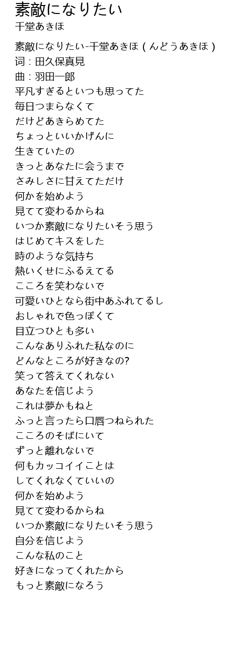 | [00:00.00] | 素敵になりたい-千堂あきほ(んどうあきほ) |