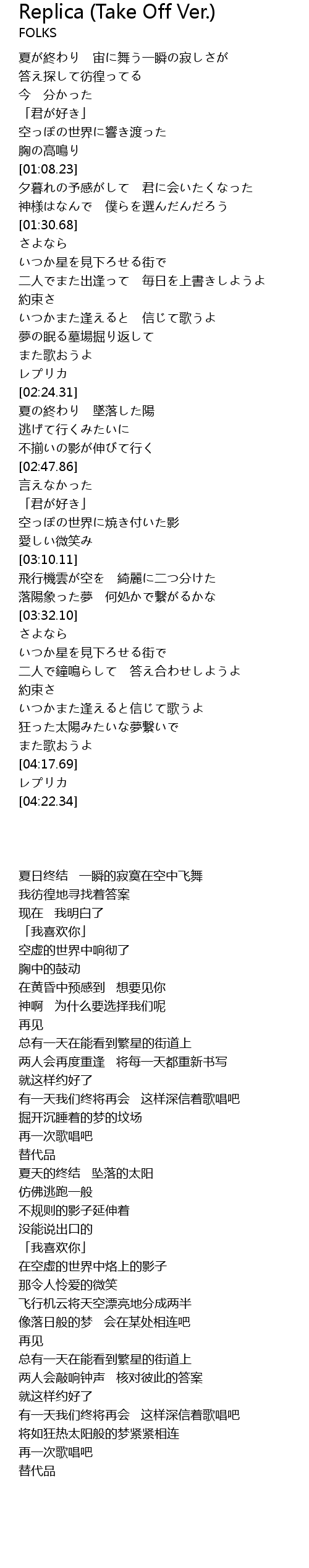 | [04:18.15] | レプリカ |