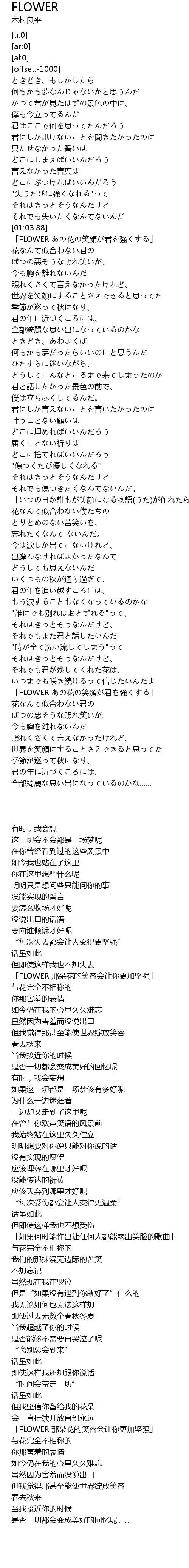 | [04:27.64] | FLOWER hua xiao yan jun qiang |