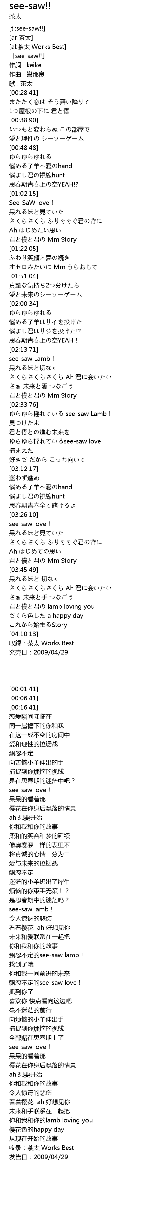 | [02:54.34] | ゆらゆら揺れている see-saw Lamb! |
