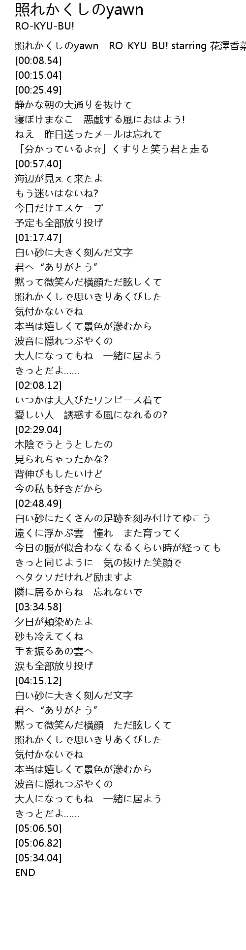 | [00:00.33] | 照れかくしのyawn - RO-KYU-BU! starring 花澤香菜 |