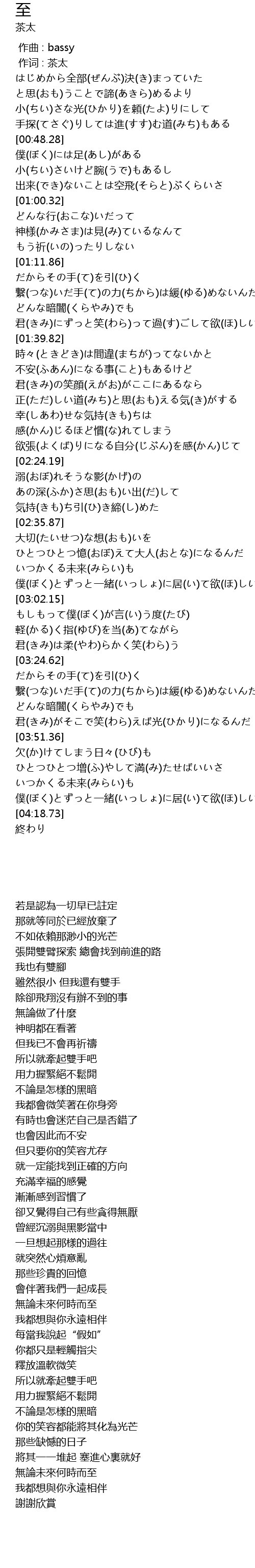 | [00:35.86] | 小(ちい)さな光(ひかり)を頼(たよ)りにして |