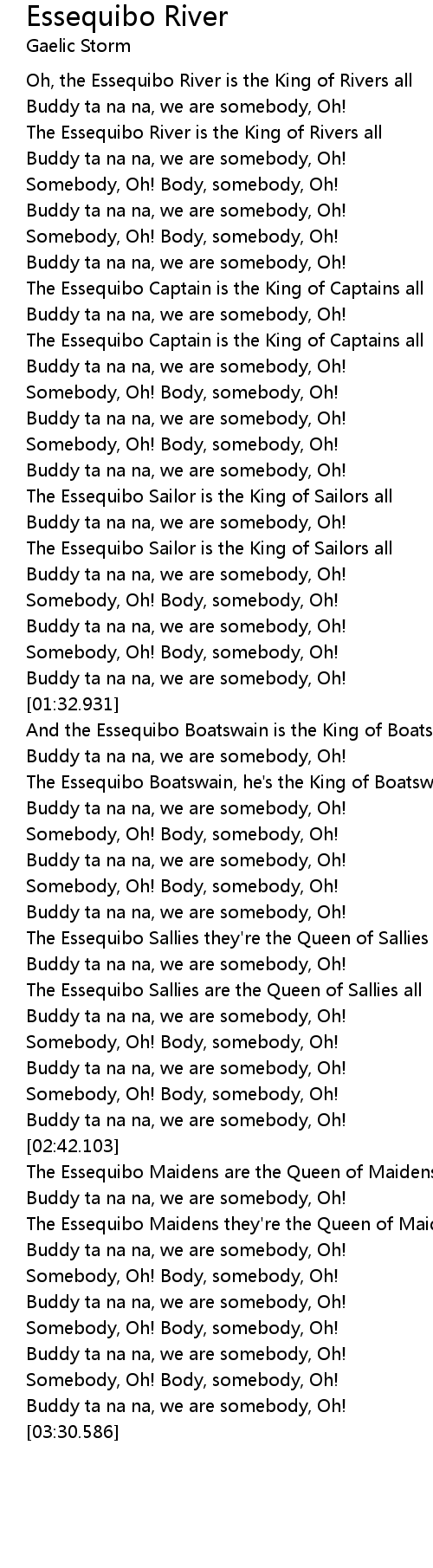 The Essequibo Boatswain, he's the King of Boatswains all |