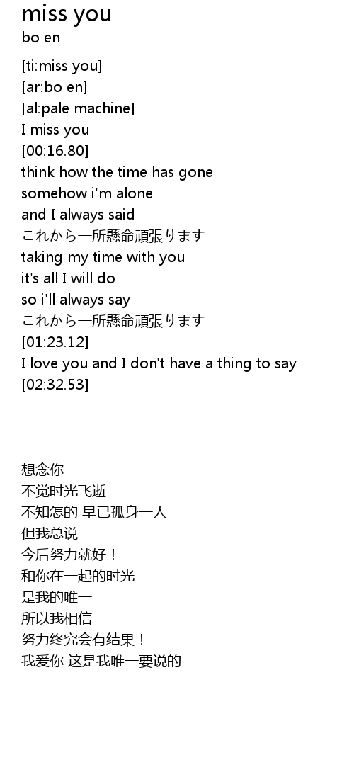 | [01:55.82] | I love you and I don' t have a thing to say |