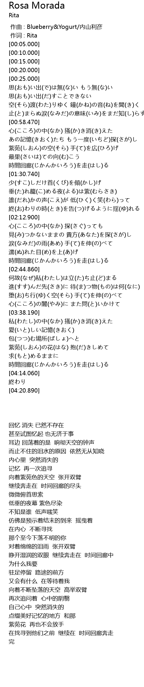 | [00:00.00] | zuo qu : Blueberry Yogurt nei shan li yan |