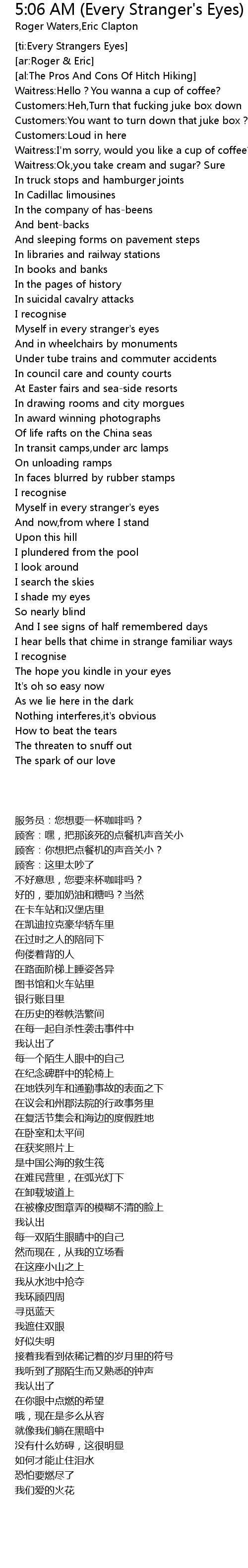 | Song | 5:06 AM (Every Stranger's Eyes) |