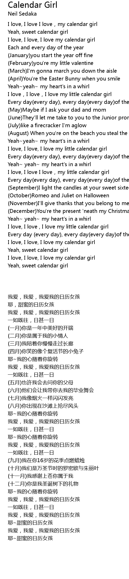 | [00:35.83] | I love, I love, I love my little calendar girl |