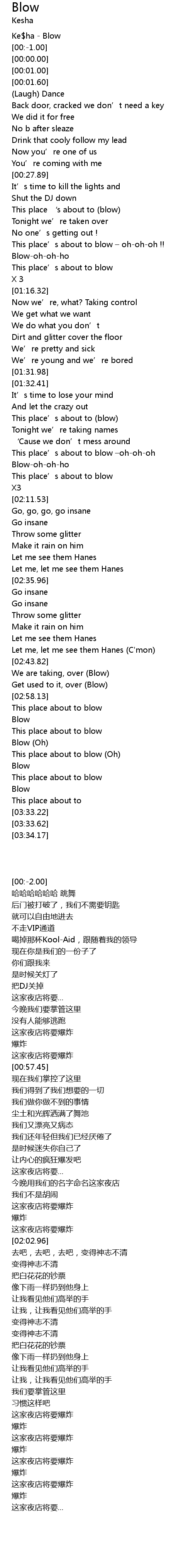 | [00:-2.00] | Ke ha Blow |