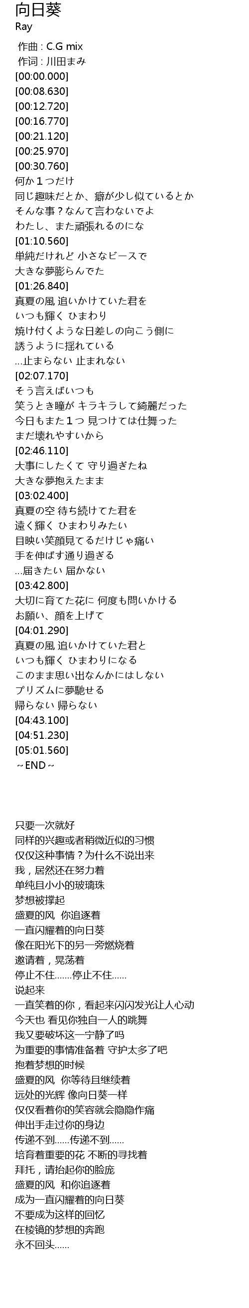 | [03:11.480] | 遠く輝く ひまわりみたい |