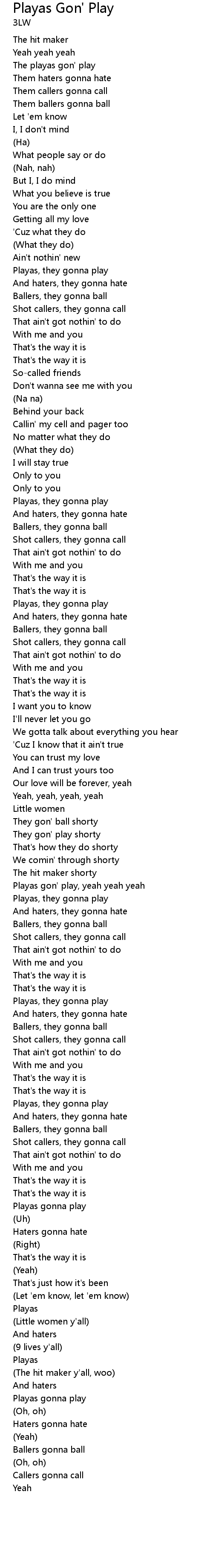 Playas gon' play, yeah yeah yeah |