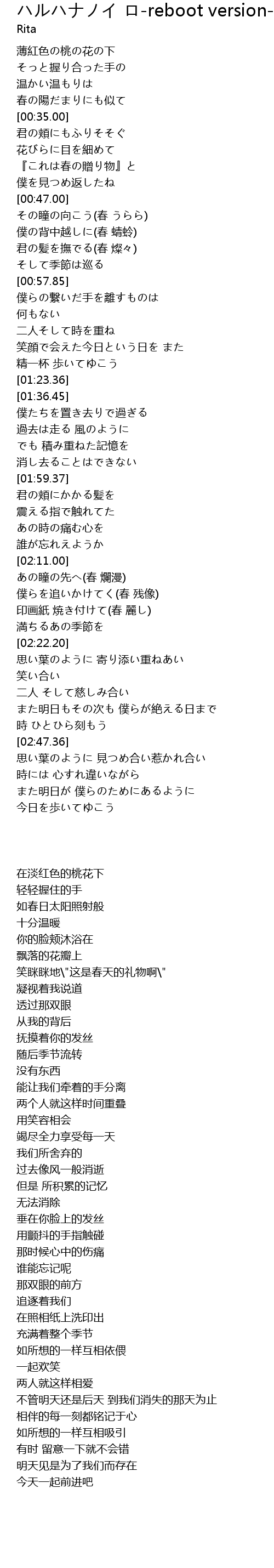 | Song | ハルハナノイ ロ-reboot version- (ボーカル新录・ニューアレンジ) |