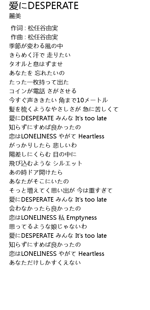 | [03:25.753] | 愛にDESPERATE みんな It's too late |