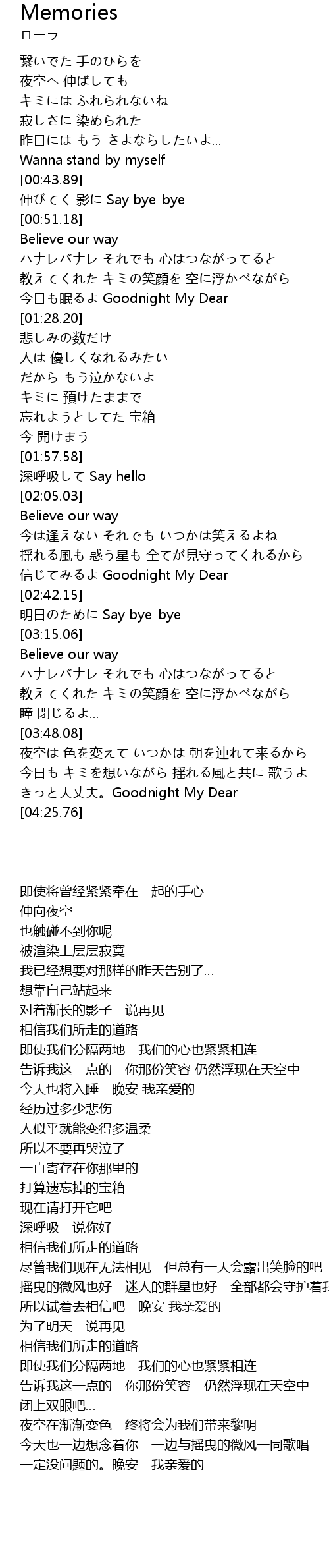 | [04:17.49] | きっと大丈夫。Goodnight My Dear |