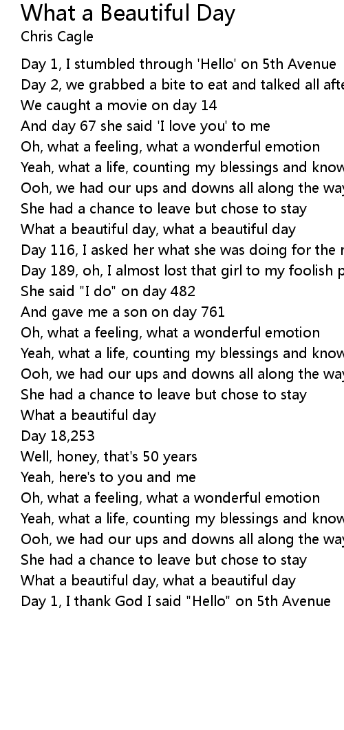 What a beautiful day, what a beautiful day |
