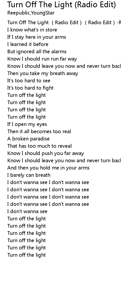 | [00:00.778] | Turn Off The Light Radio Edit Radio Edit Reepublic TElle |