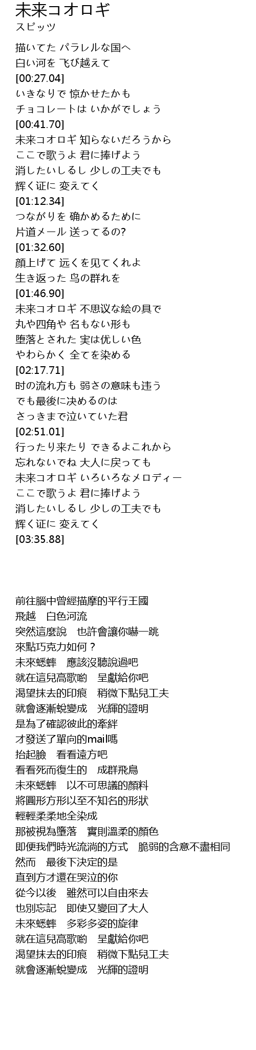 | [03:07.98] | 未来コオロギ いろいろなメロディー |