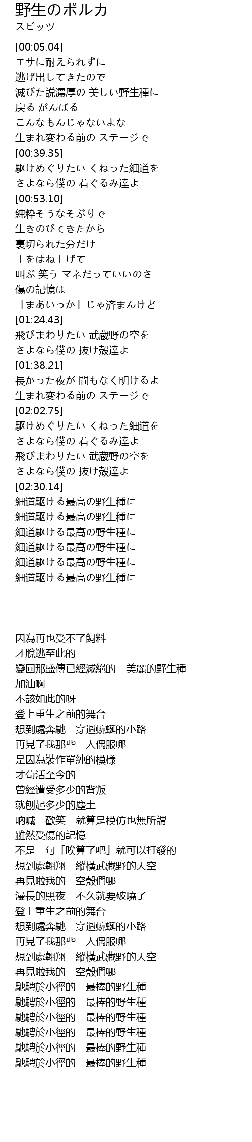 | [02:54.68] | 細道駆ける最高の野生種に |