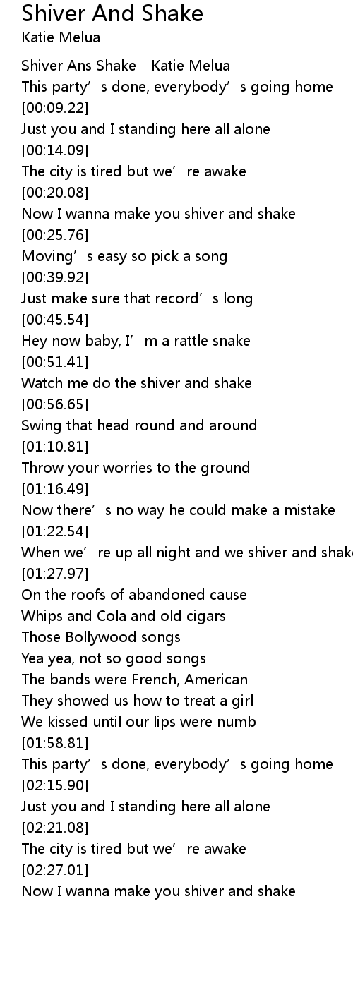 | [00:00.73] | Shiver Ans Shake Katie Melua |