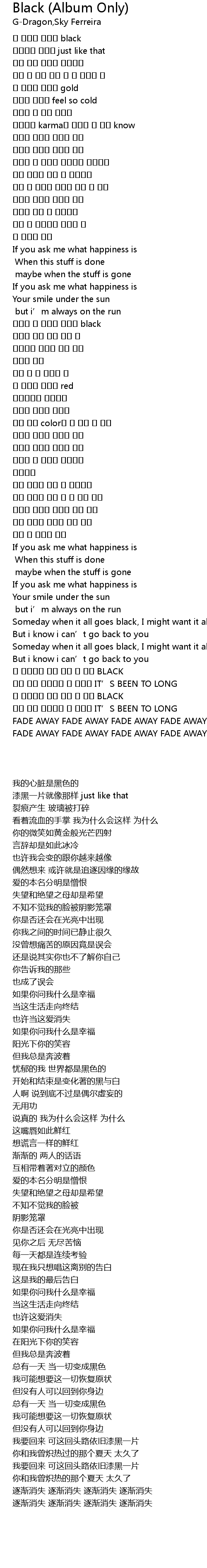 | Song | Black (Album Only) |