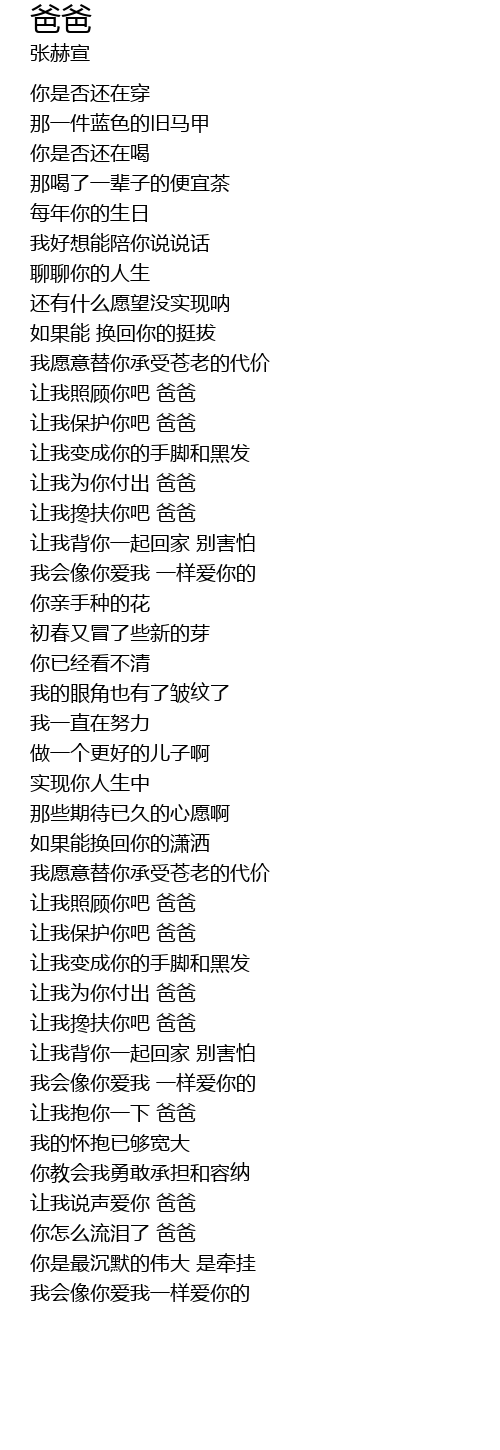 | [03:17.37] | ràng wǒ shuō shēng ài nǐ bà bà |