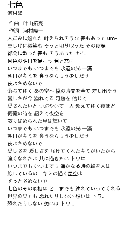 | [02:37.240] | いつまでも いつまでも 永遠の光 一滴 |