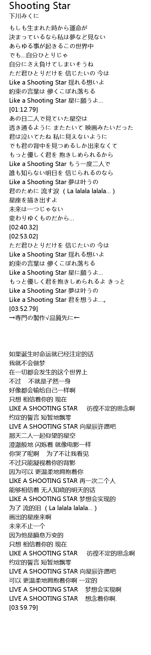 | [03:44.70] | Like a Shooting Star 君を想うよ…。 |