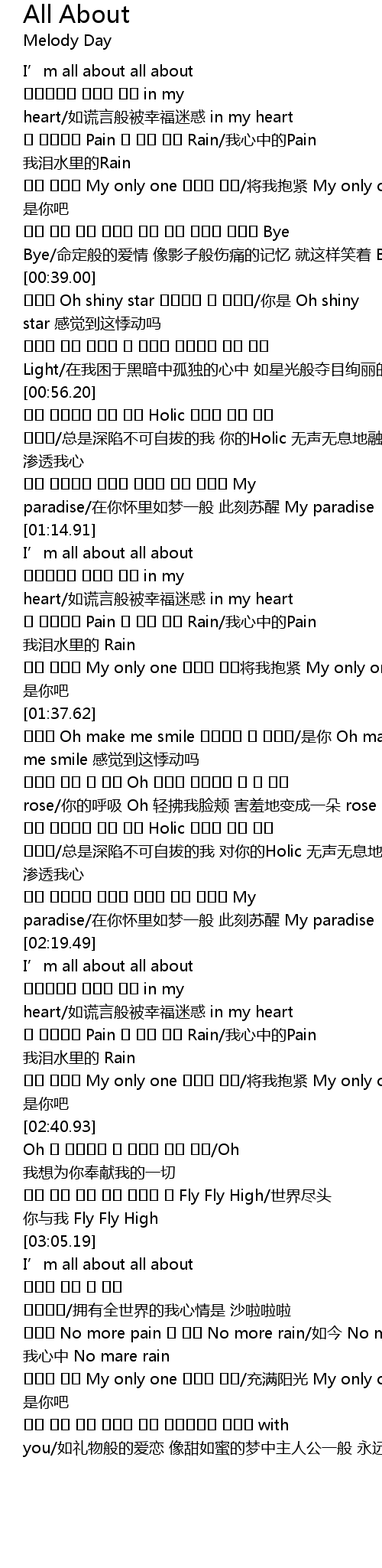 | [03:15.07] | 이제는 No more pain 내 맘엔 No more rain/如今 No more pain 我心中 No mare rain |
