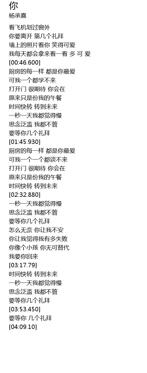 | [04:02.70] | 要等你 几个礼拜 |