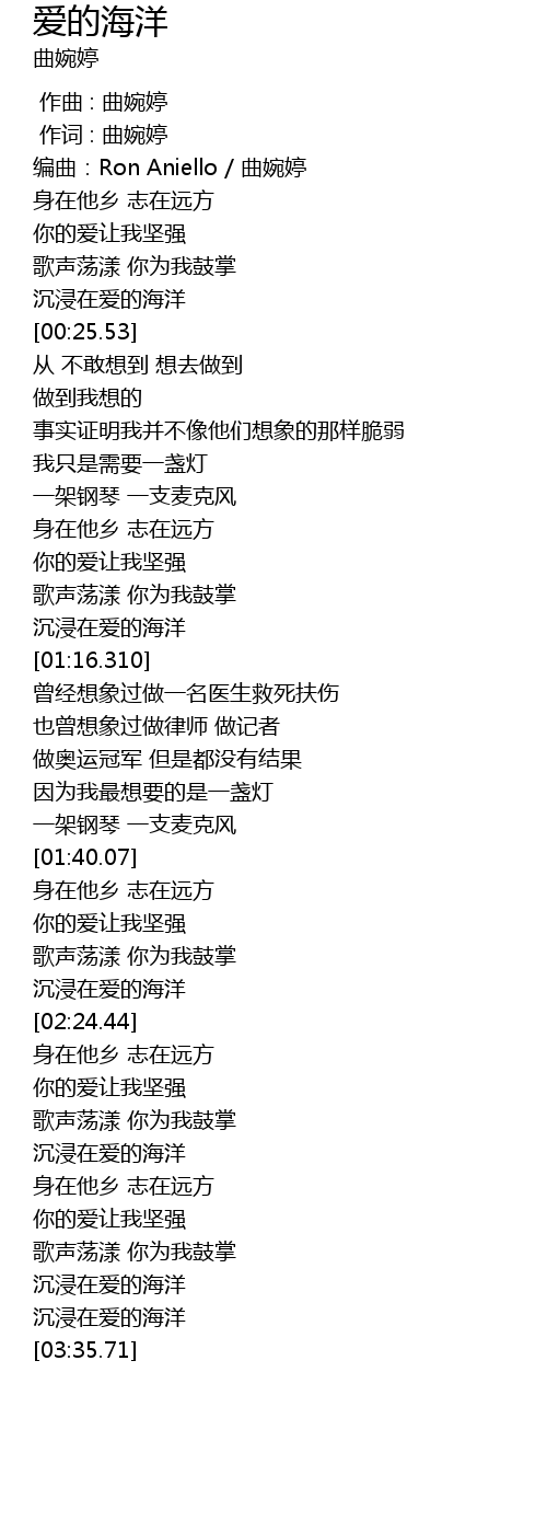 | [03:23.55] | 沉浸在爱的海洋 |