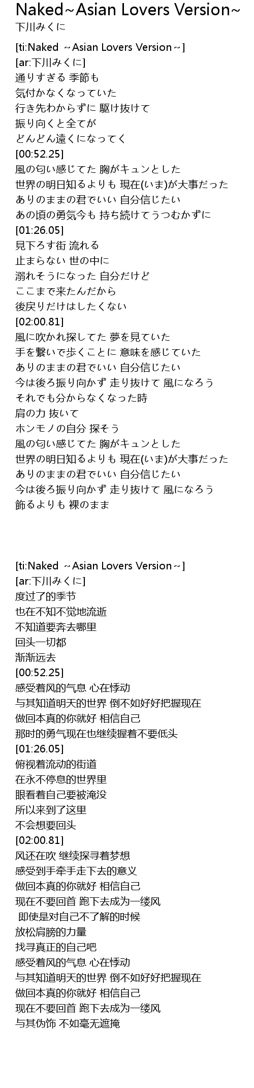 | [03:22.88] | ありのままの君でいい 自分信じたい |