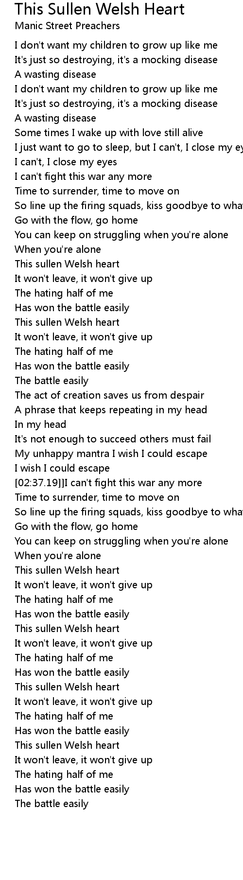 This sullen Welsh heart |