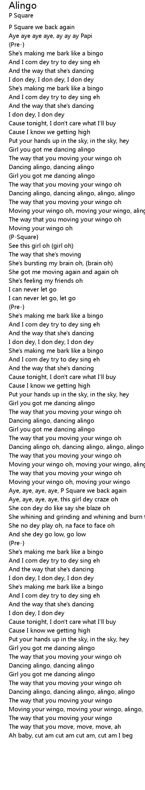 Moving your wingo oh, moving your wingo, alingo, alingo |