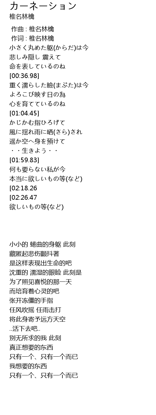 | [02:45.51][02:18.26] | 唯(ただ)一つ、唯一つだけ |