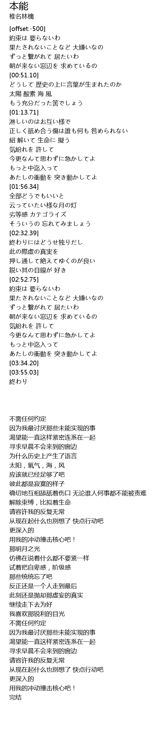 | [03:26.22] | あたしの衝動を 突き動かしてよ |
