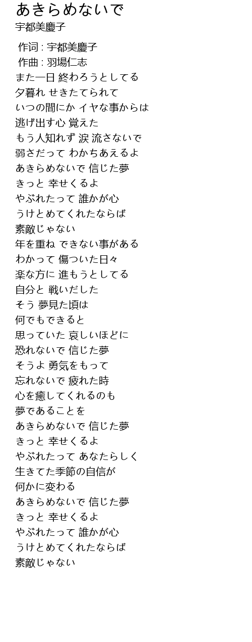 | [00:00.000] | 作词 : 宇都美慶子 |