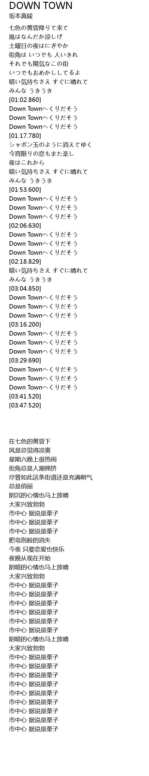 | [03:32.0] | Down Townへくりだそう |