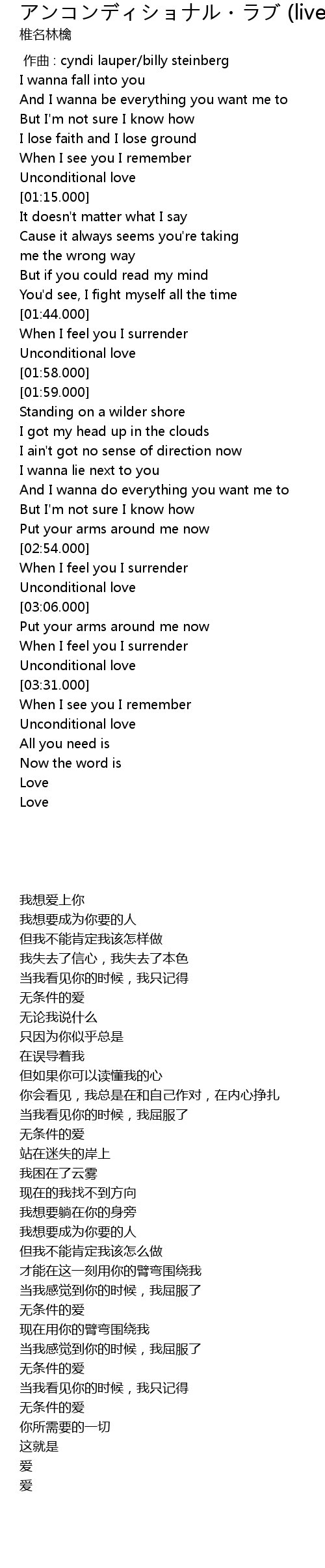 | [03:00.420] | Unconditional love |