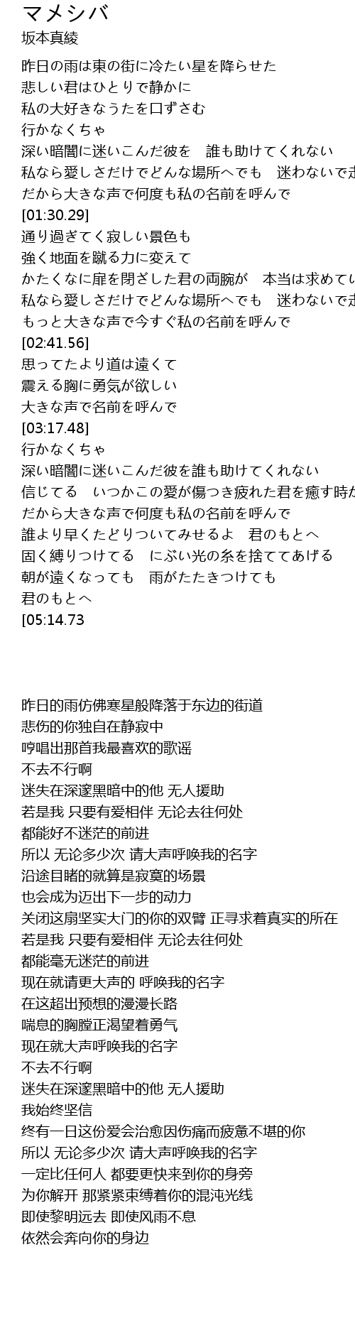 | [03:40.36] | 信じてる いつかこの愛が傷つき疲れた君を癒す時がくること |