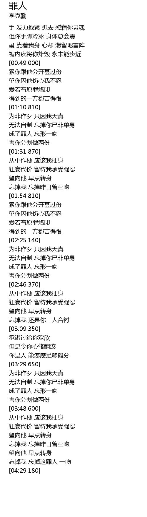| [03:39.700] | 成了罪人 忘形一吻 |