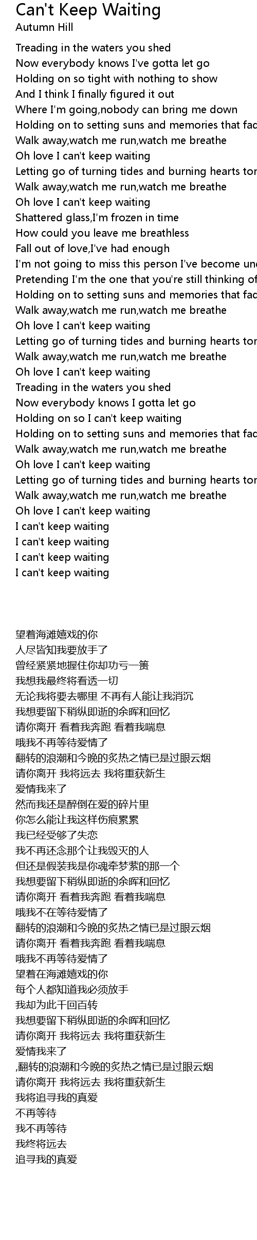 Holding on so I can't keep waiting |