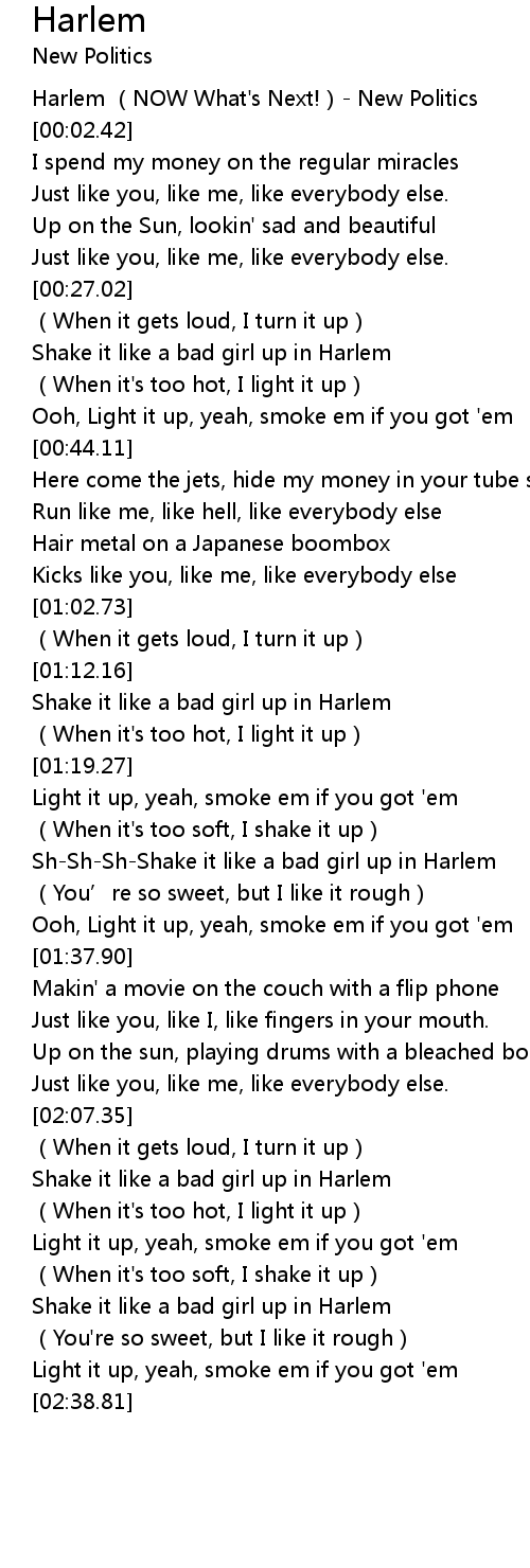 | [00:00.69] | Harlem (NOW What's Next!)- New Politics |