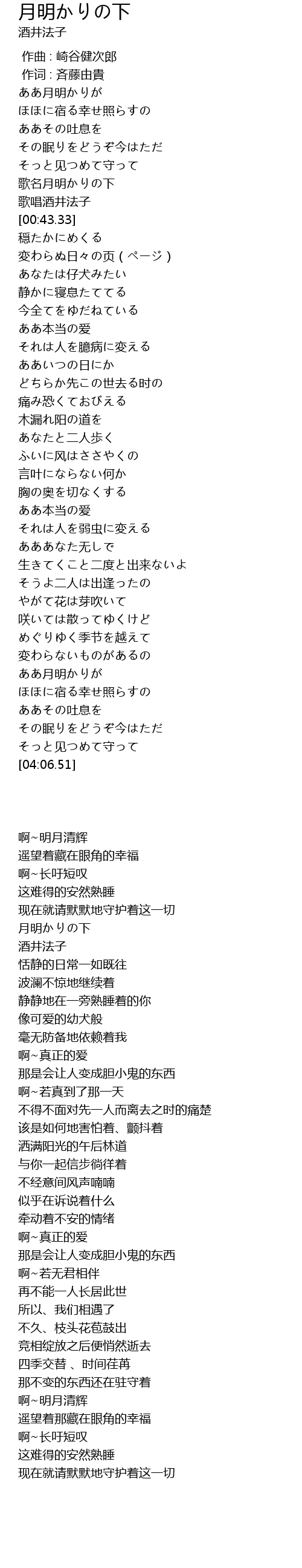 | [00:19.40] | その眠りをどうぞ今はただ |