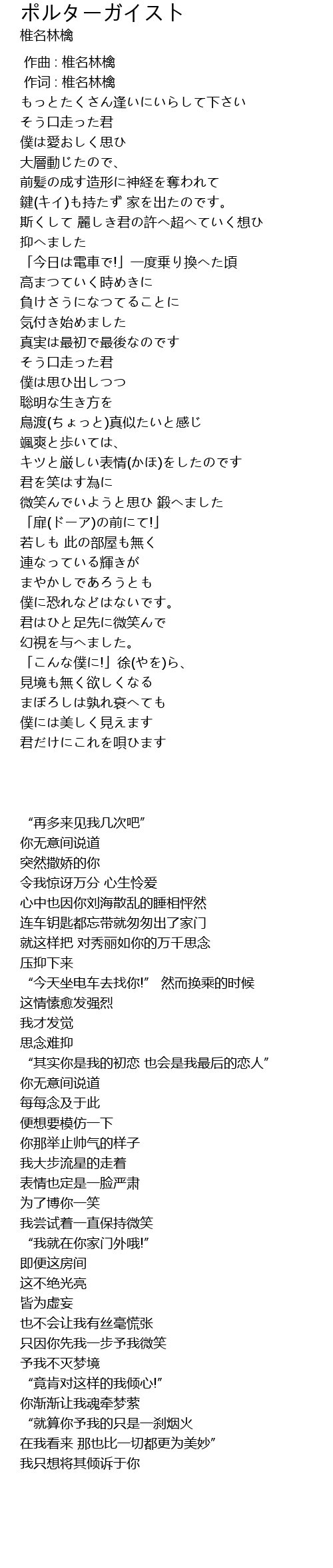 | [00:29.46] | 前髪の成す造形に神経を奪われて |