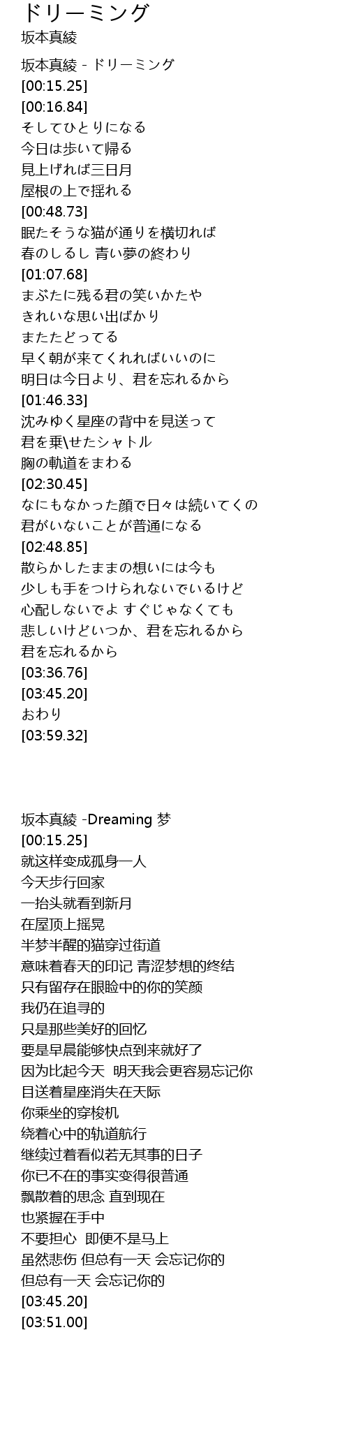 | [00:02.53] | 坂本真綾 - ドリーミング |