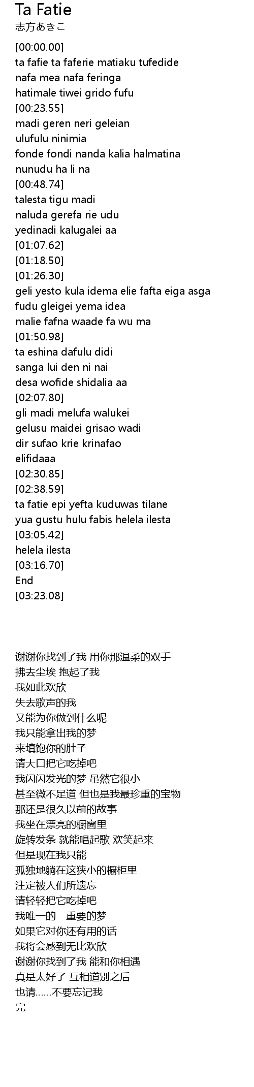 | [00:00.20] | ta fafie ta faferie matiaku tufedide |