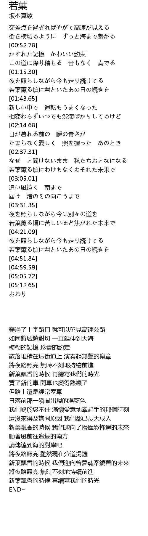| [04:06.49] | 若葉薫る頃に苦しいほど焦がれた未来で |