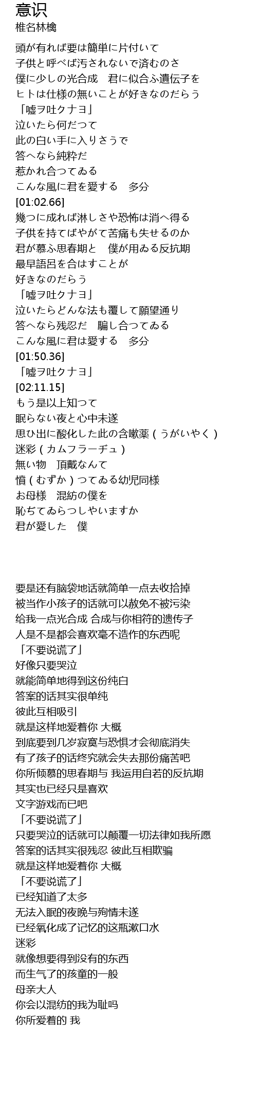 | [01:10.20] | 子供を持てばやがて苦痛も失せるのか |