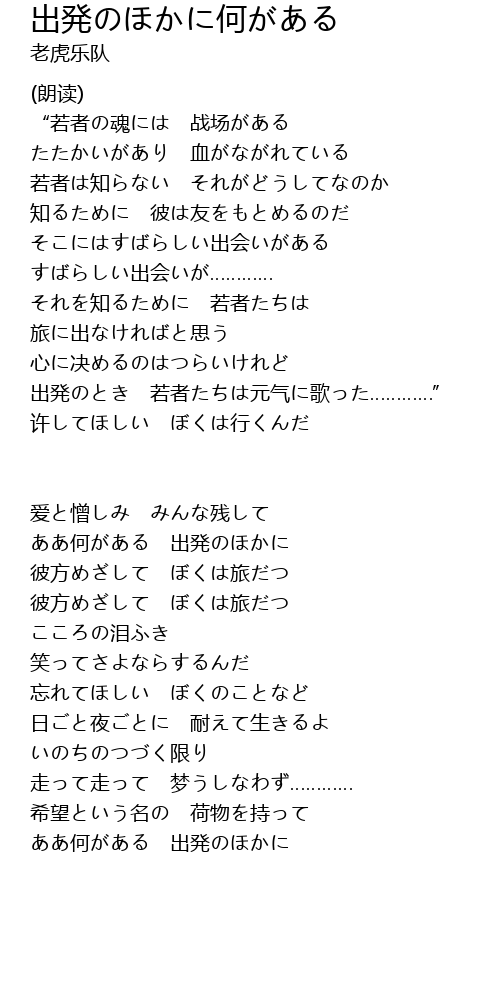 | 出発のとき 若者たちは元气に歌った…………” | |